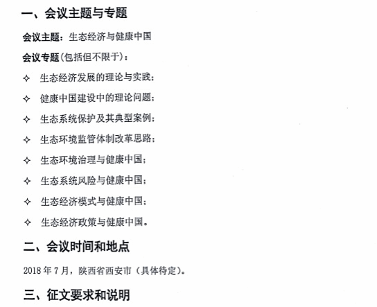 中国生态经济学学会2018年学术年会暨“生态经济与健康中国”研讨会征文通知
