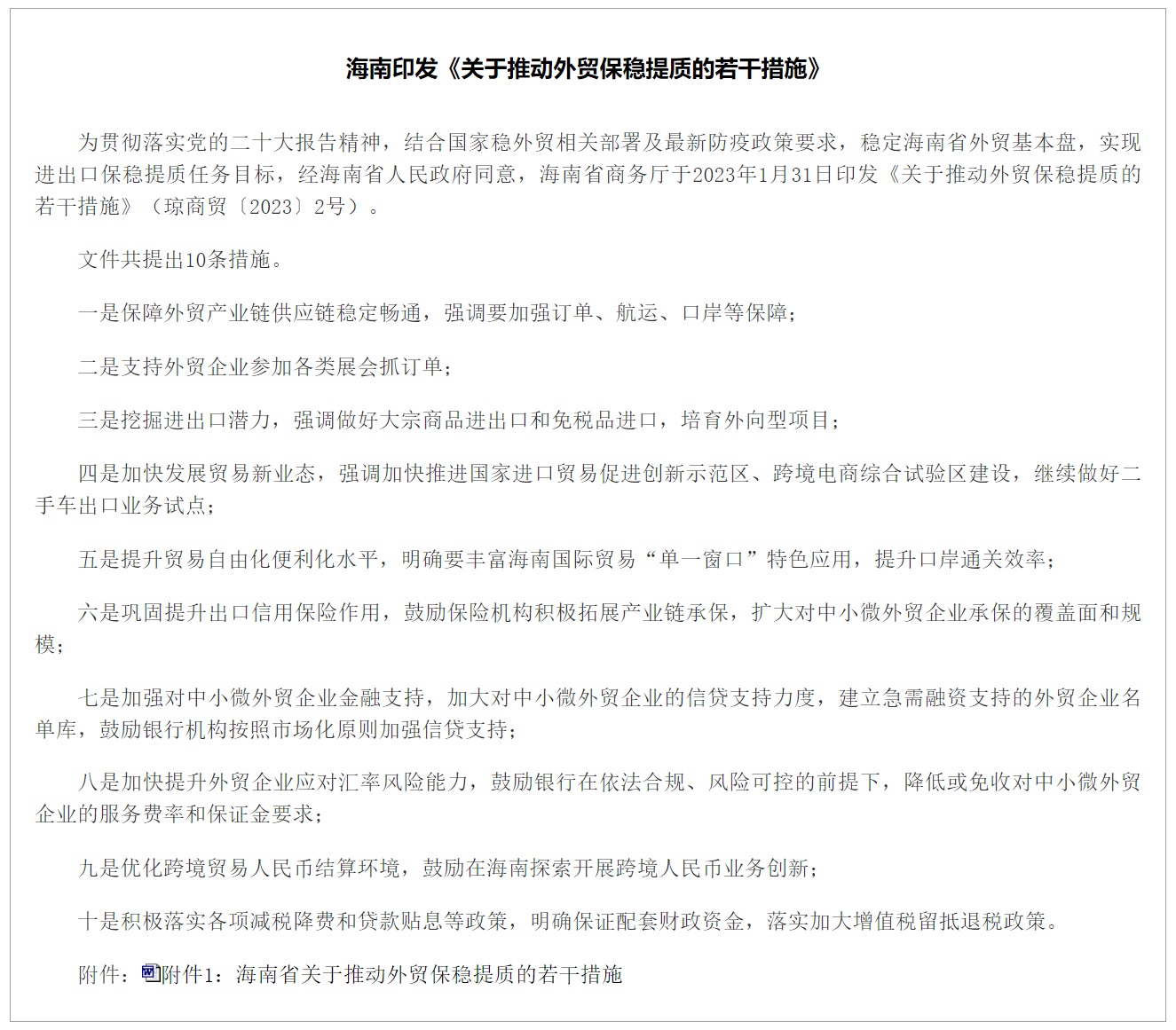 为贯彻落实党的二十大报告精神,结合国家稳外贸相关部署及最新防疫政策要求,稳定我省外贸基本盘,实现进出口保稳提质任务目标,提出以下措施。