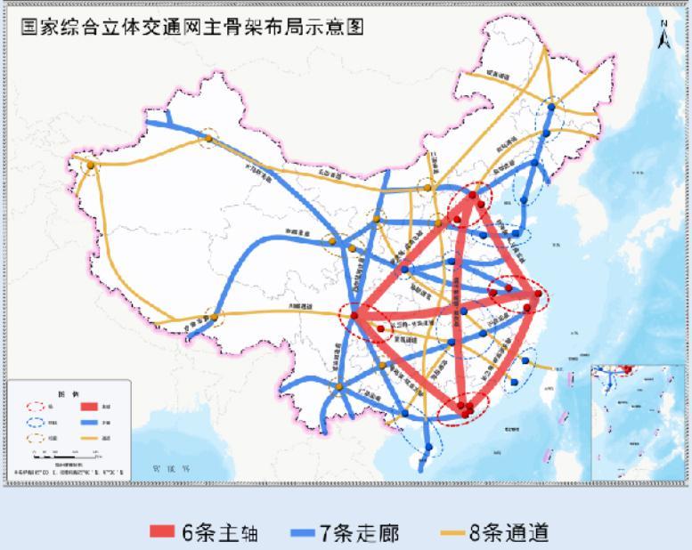 国家综合立体交通网主骨架由国家综合立体交通网中最为关键的线网构成,是我国区域间、城市群间、省际间以及连通国际运输的主动脉,是支撑国土空间开发保护的主轴线,也是各种运输方式资源配置效率最高、运输强度最大的骨干网络。