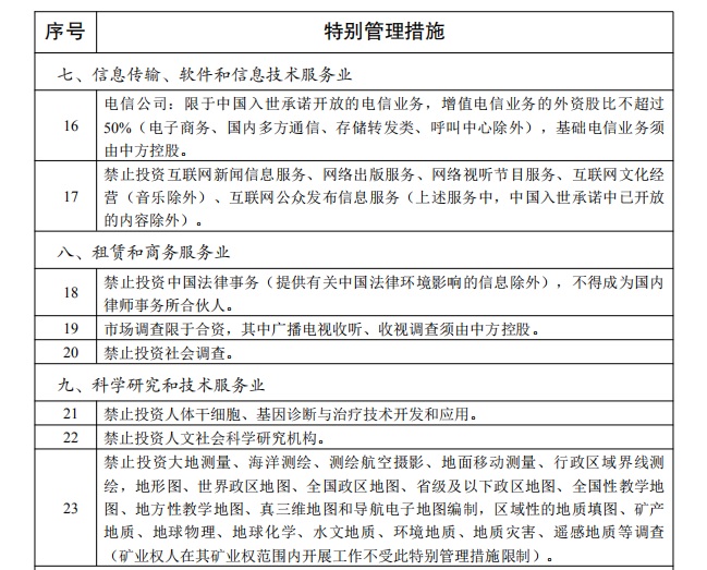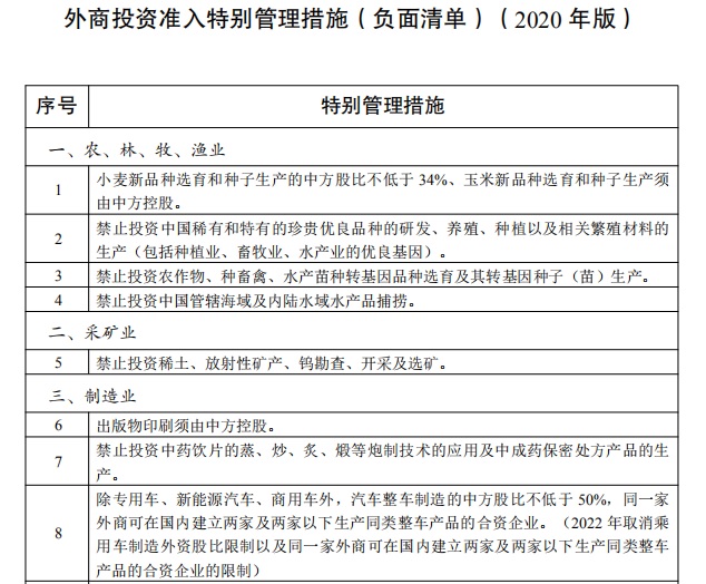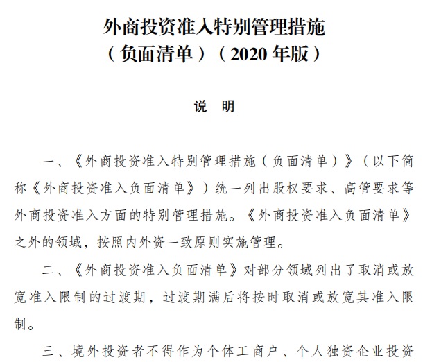 1.《外商投资准入特别管理措施(负面清单)(2020年版)》