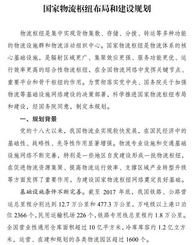 附件:国家物流枢纽布局和建设规划(下载)
