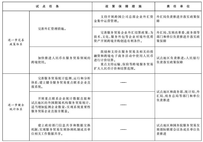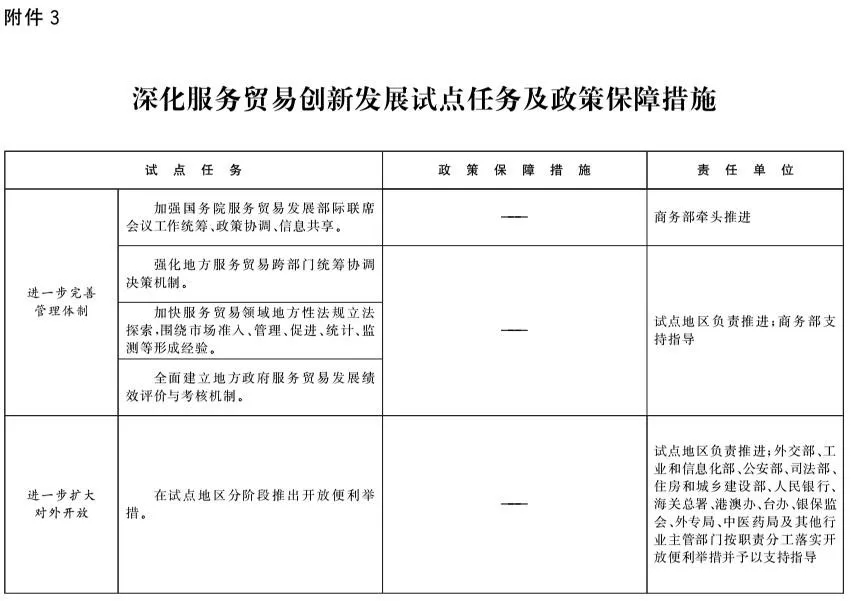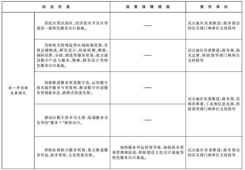 3.深化服务贸易创新发展试点任务及政策保障措施
