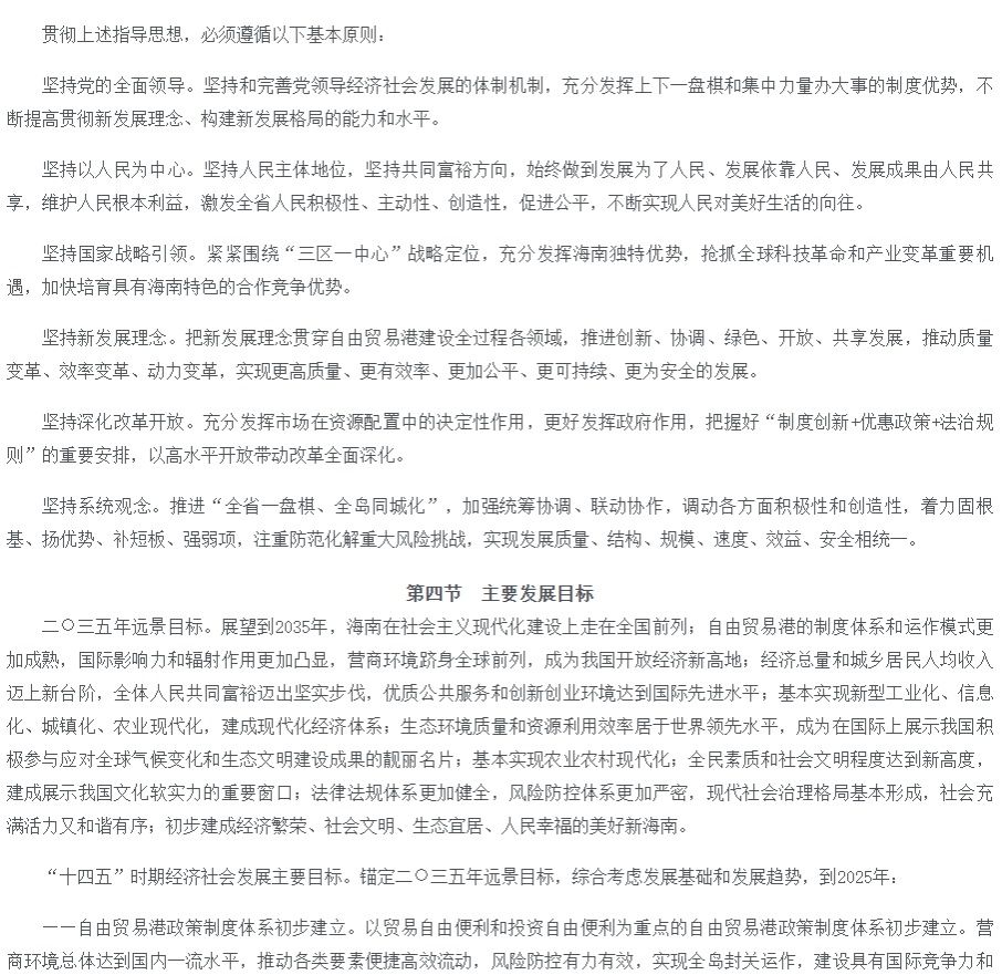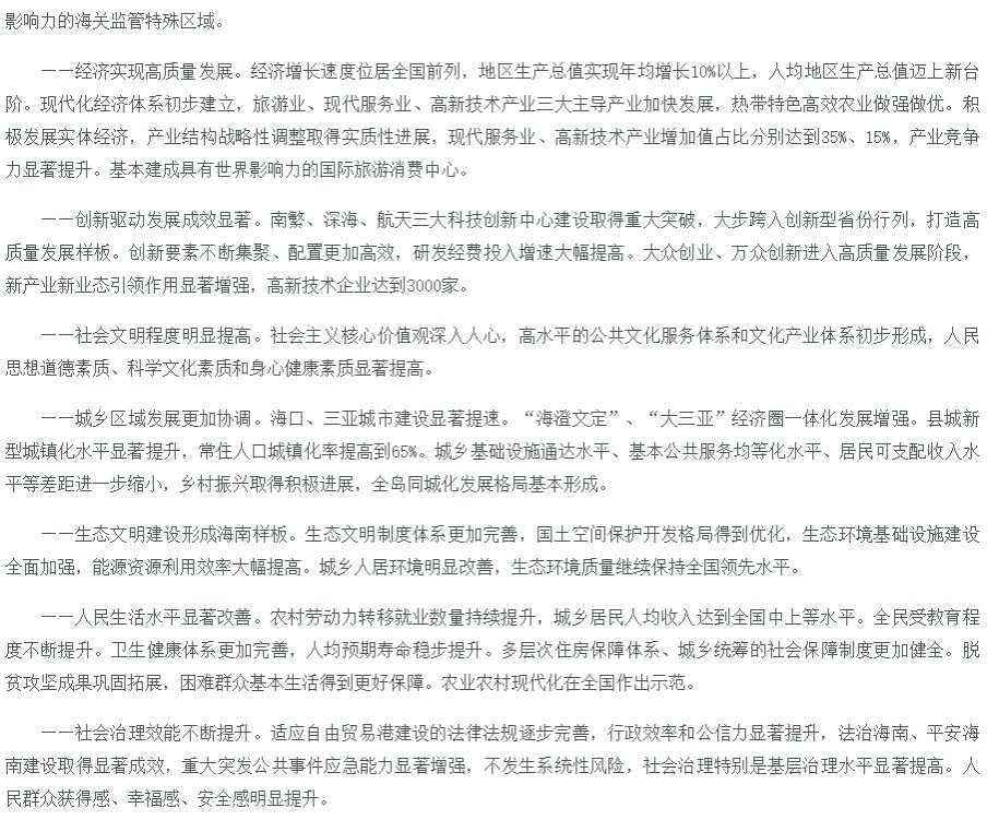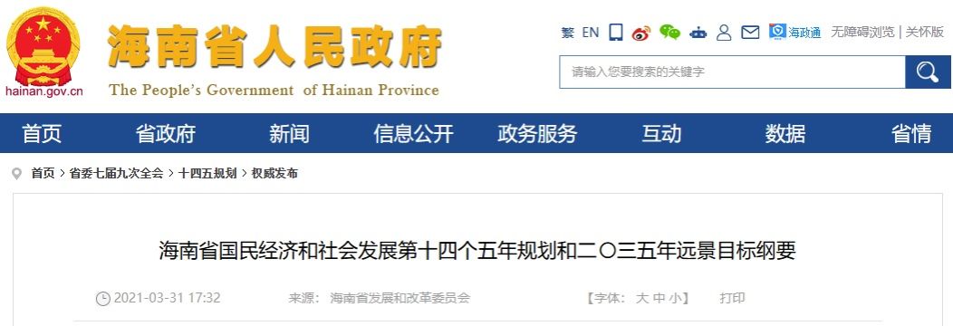海南省国民经济和社会发展第十四个五年规划和二〇三五年远景目标纲要