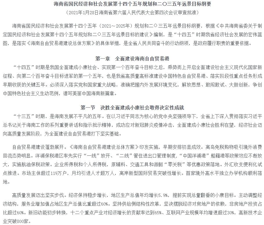 海南省国民经济和社会发展第十四个五年规划和二〇三五年远景目标纲要.pdf