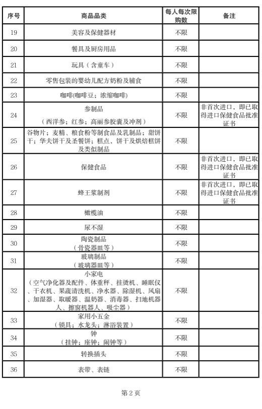 附件:离岛免税商品品类及每人每次购买数量范围