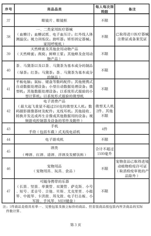 调整后离岛免税商品共47类,具体品类、购买数量、备注要求见附件,并按此执行。